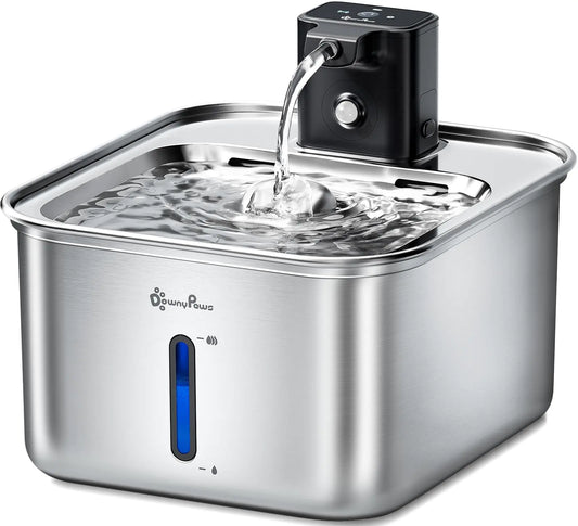 DownyPaws Cat Water Fountain Stainless Steel Wireless 101 oz/3L FurSink Battery Operated Cat Water Dispenser for Pets Indoor Cordless Dog Drinking Fountain with Motion Sensor Easy to Clean Black